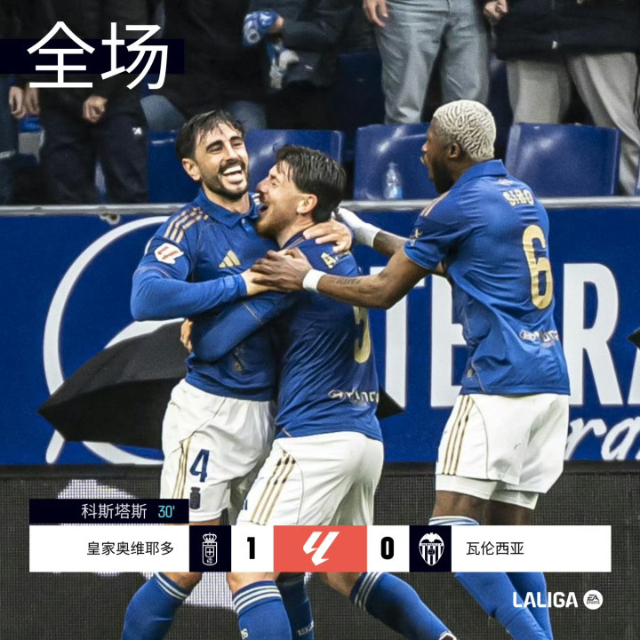 北京时间3月15日01:30,西甲联赛第28轮,皇家奥维耶多主场对阵瓦伦西亚。第30分钟皇家奥维耶多科斯塔斯破打入制胜球。最终比分皇家奥维耶多 1-0 瓦伦西亚。