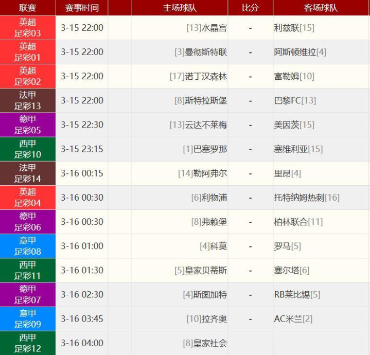 今日份足彩对阵