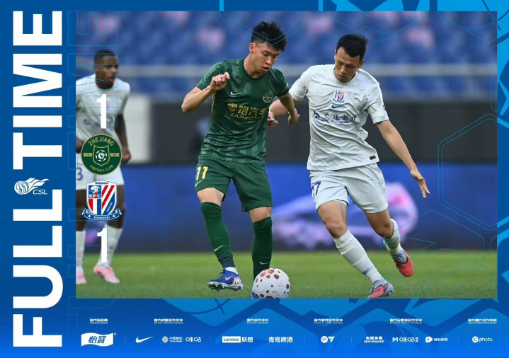 浙江俱乐部绿城 1-1 上海申花